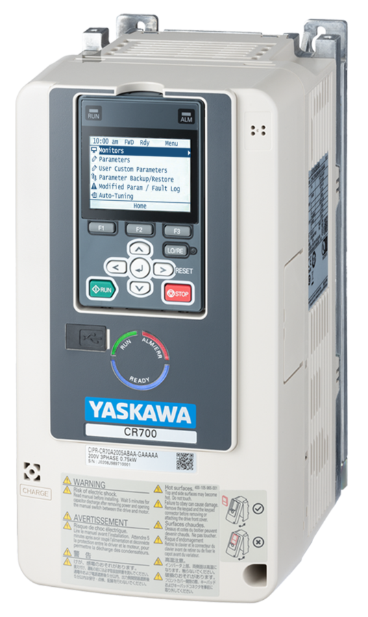 The CR700 provides a user programming experience with an intuitively-designed keypad and tactile user interface. Self-guiding navigation menus and start-up wizards make the programming and set-up faster and easier than ever. With DriveWizard® Mobile the CR700 can easily be managed and controlled from your smartphone or tablet.