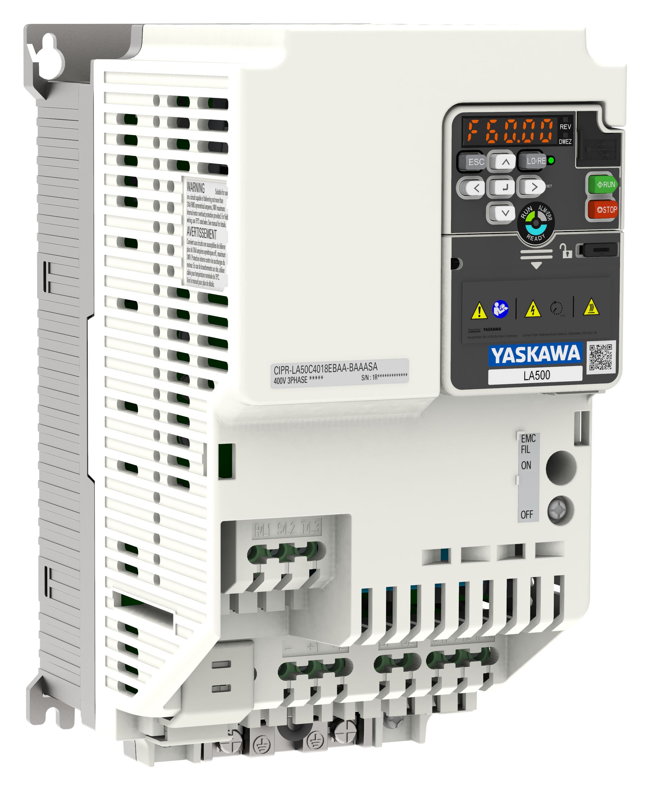 LA500 drives can be programmed and operated with an external high-resolution graphical keypad. Support for 9 languages, a Setup Wizard, and the intuitive full text menu structure simplify drive setup and save valuable time.