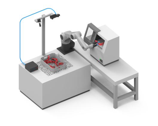 Roboception's 3D stereo vision solutions consist of advanced 3D stereo sensors such as the rc_visard and the rc_viscore as well as a number of application-specific software modules from the rc_reason software suite. "Eyes and brains for robots" are combined in this system to create an extremely user-friendly solution that makes integration very easy for non-vision experts. While the rc_visard convinces as an intelligent camera with extensive onboard computing capacity, the rc_viscore with 12 megapixel resolution delivers impressively sharp images especially for kitting applications, machine tending or bin picking. Coupled with the detection software rc_reason CADMatch, which uses the CAD model of an item and a sophisticated mix of AI and classical algorithms to identify grasp points, users have a next-generation vision solution at their disposal. Go to Product Page- Offsite feasibility analysis in 48 h: Model-based approach works with CAD-data only, no onsite data recording required